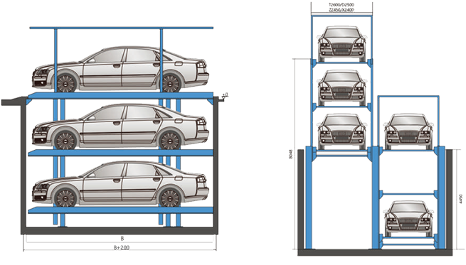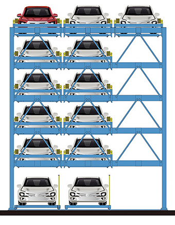 升降橫移類機(jī)械式停車設(shè)備是停車行業(yè)應(yīng)用廣泛的一類停車產(chǎn)品,型式比較多,并且可以采用地面上結(jié)合基坑的形式,此類設(shè)備對場地的適應(yīng)性較強(qiáng),對土建要求較低,可建在露天,也可建在大樓的地下。規(guī)??纱罂尚?,可根據(jù)不同的地形和空間進(jìn)行任意組合、排列,空間利用率高,設(shè)備穩(wěn)定可靠,存取車快捷,使用維護(hù)簡便,價格較低。